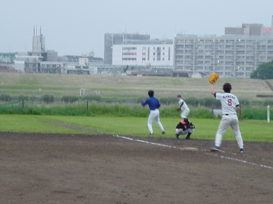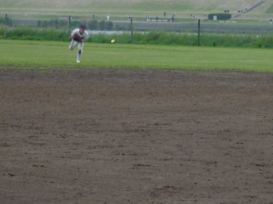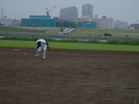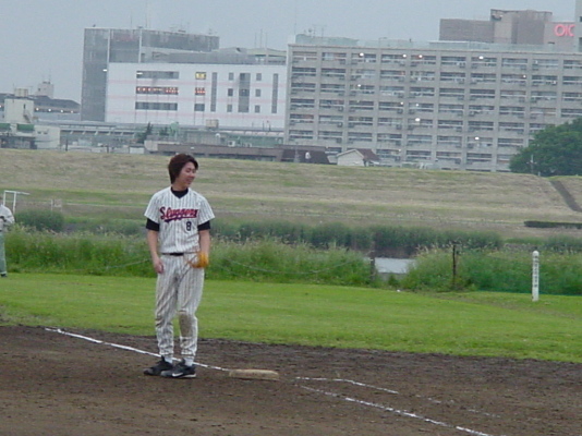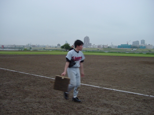 試合終了後ショートミーティングの際に雨が降ってきました。